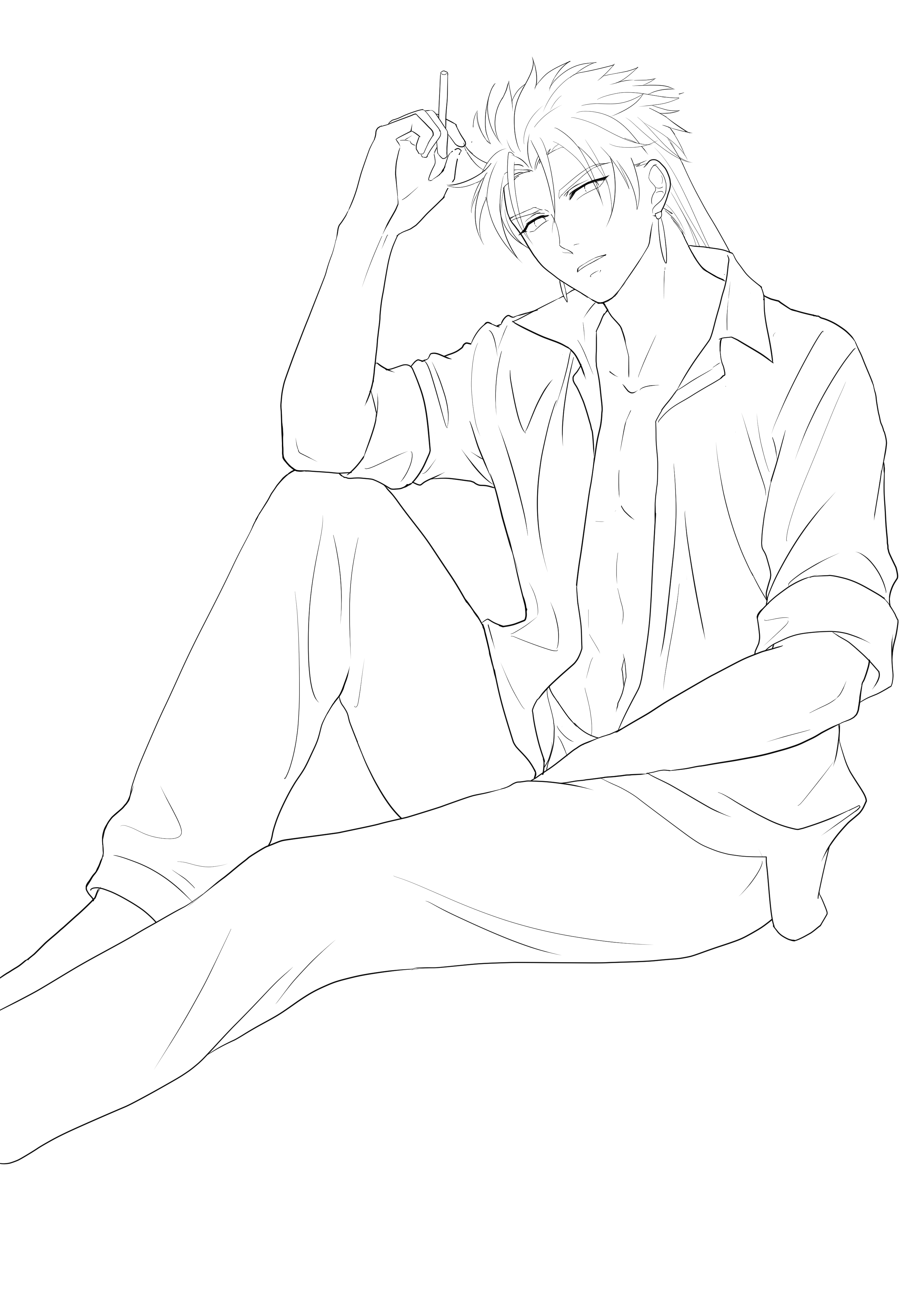 アニメっぽい感じにするつもりだけどその割にはしわの数が多すぎる気がするのでもうちょっとうまいこと簡略化できるようになりたい